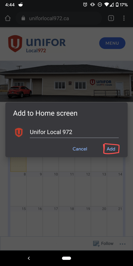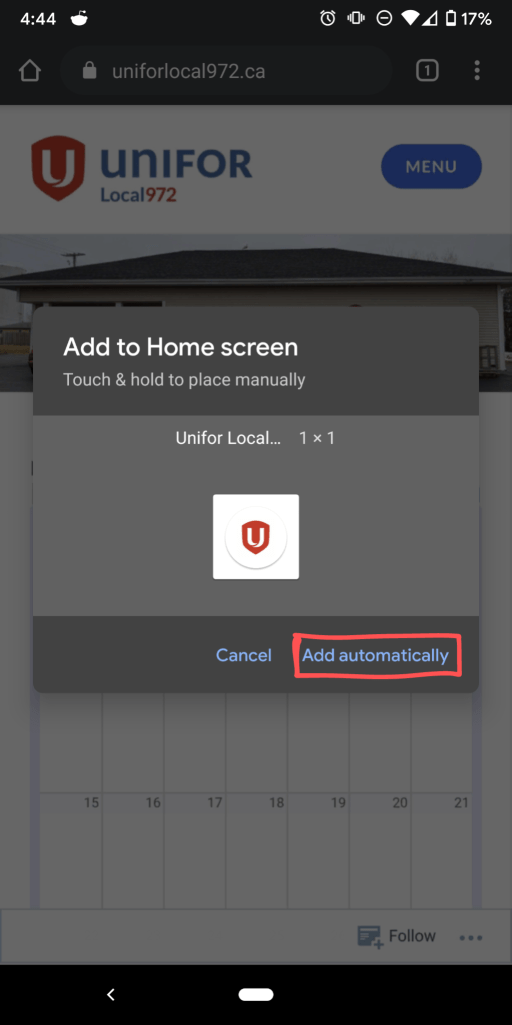 You should now see the Unifor logo on your phone’s home screen as shown below and can now tap on that for instant access to the Unifor website whenever you’d like it.